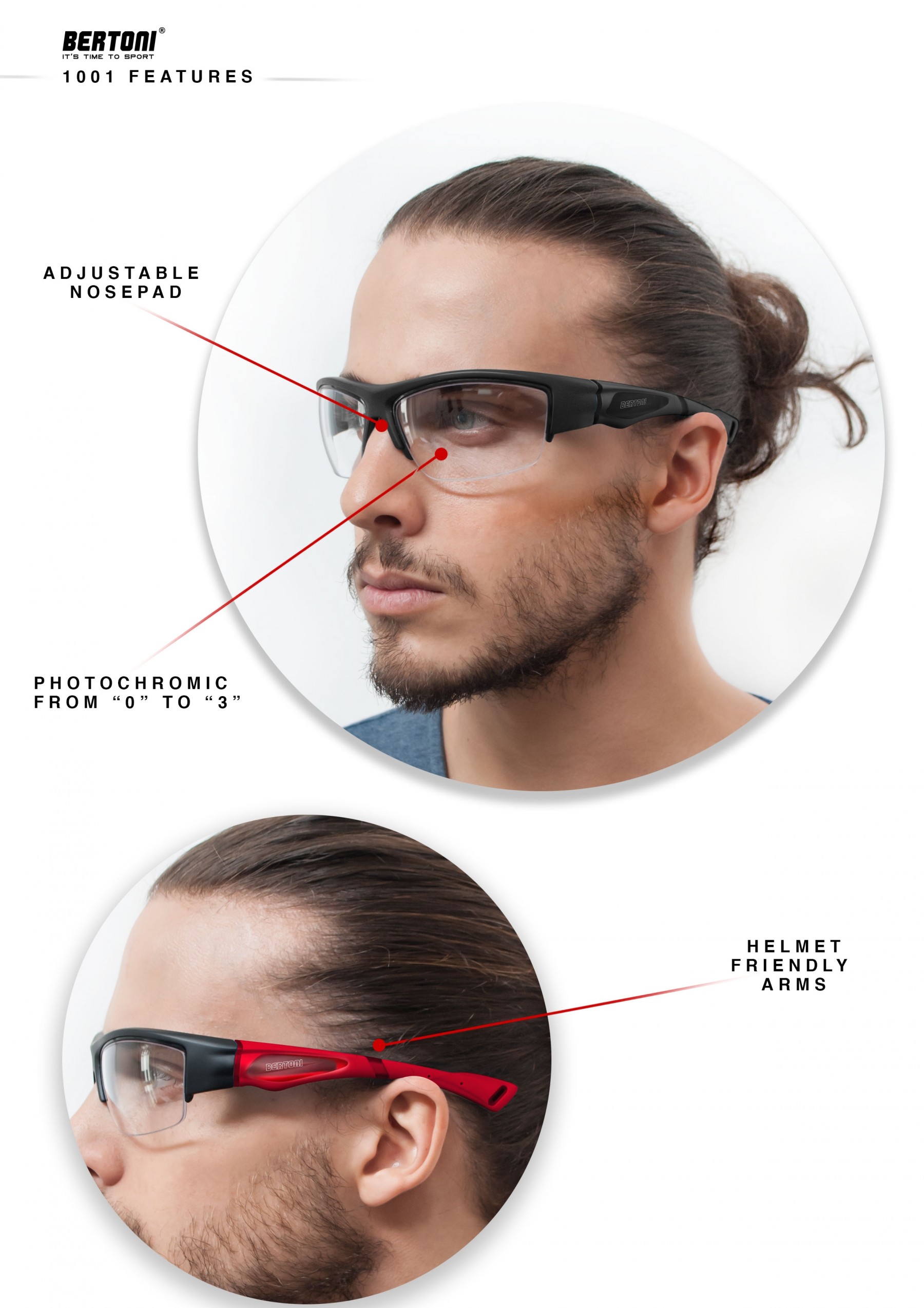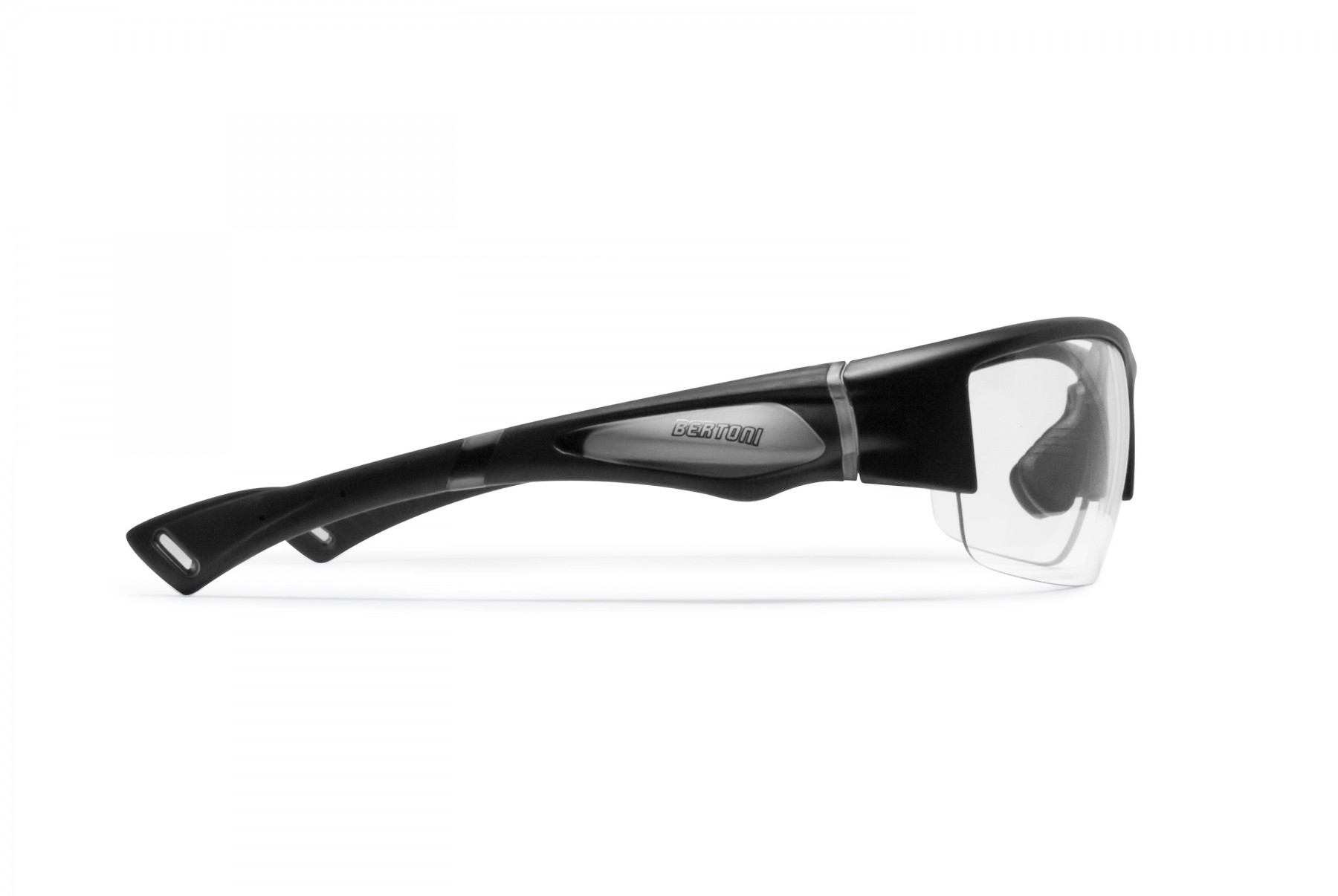 Bertoni Sportbrille Motorradbrille Selbsttönend Herren Damen – mod. F1001: RAHMEN: flexible Ultralight TPX - Gewicht: 19 grames - Gute Abdeckung: Wind und Witterungsschutz - bessere periphere Sicht. NEUE Selstonend Glaser Photochrome Kat. 0 (transparent) bis 3 (dunkel), 100% UV-Schutz - Die photochromen Gläser passen sich veränderten Lichtverhältnissen an, innovativen technology: Verdunkeln sie schnell auf eine Filtertönung der Kategorie 3, und hellen sich in wieder zu klaren Brillengläsern auf. Während dieser Übergänge bleibt der UV-Schutz 100 prozentig erhalten. Verstellbare Nasenpads zur Anpassung an die Nasenform, hergestellt aus hypoallergenem und wasserabweisendem TPR90 - Weiche Nasenpads und Bügel für guten Halt.