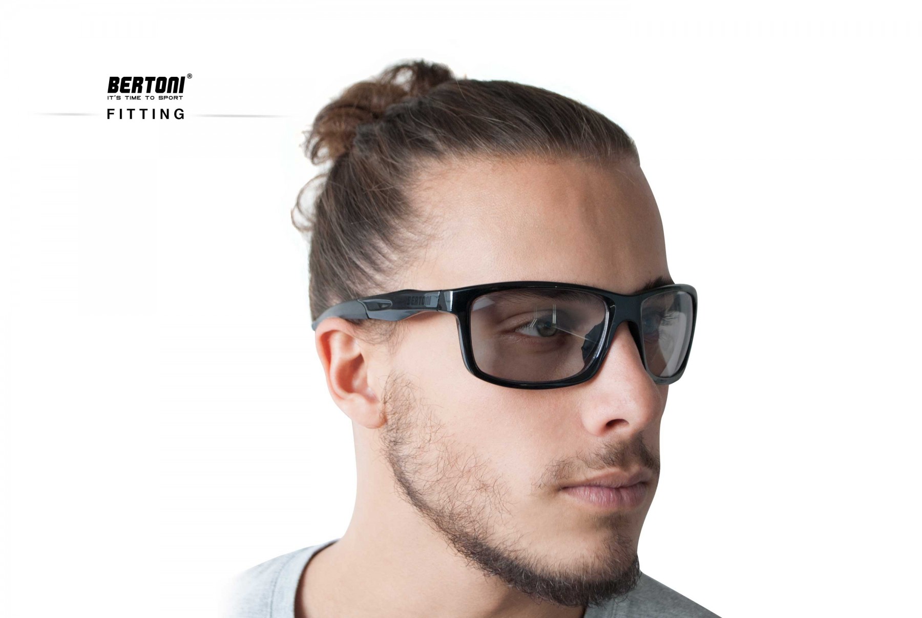 Bertoni Photochromen Selbsttönenden Windschutz Motorradbrillen - ALIEN F Automatische Scheibentönung. NEUE Selbsttönende Photochrome Linsen Kat. 0 bis 3, 100% UV-Schutz - Die photochromen Linsen passen sich veränderten Lichtverhältnissen an. Rahmen: Nylon Mesh - Gewicht 19 grames - Größe: für schmale, normale und große Gesichter. Linsen robuste Polycarbonatgläser: schützen die Augen vor Verletzungen. Bügelenden und Nase gummiert: fester Halt am Kopf, kein Verrutschen. Gute Abdeckung: Wind und Witterungsschutz - bessere periphere Sicht .