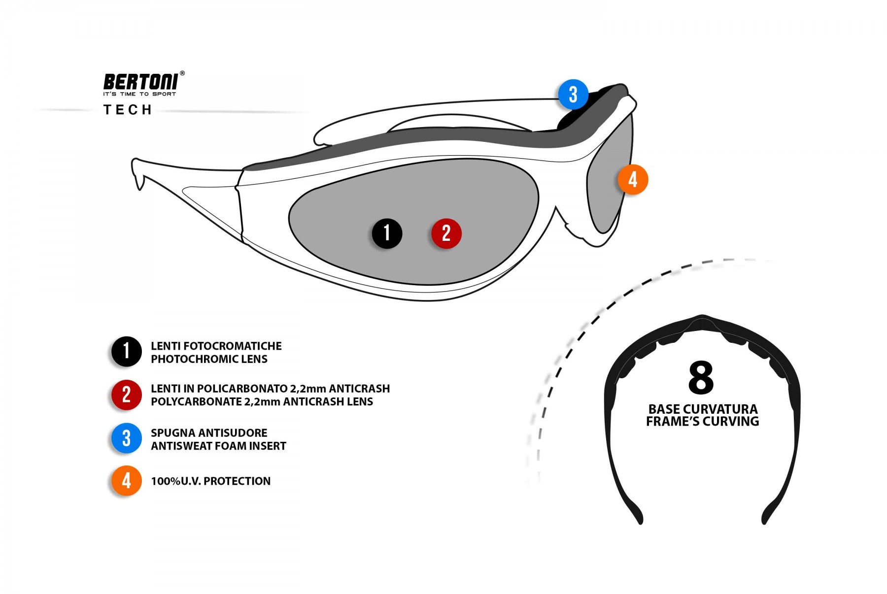 Montura negro matte en policarbonato - Resiste a los impactos - Forma envolvente: protege los ojos del viento y la intemperie, mejor visión periférica.