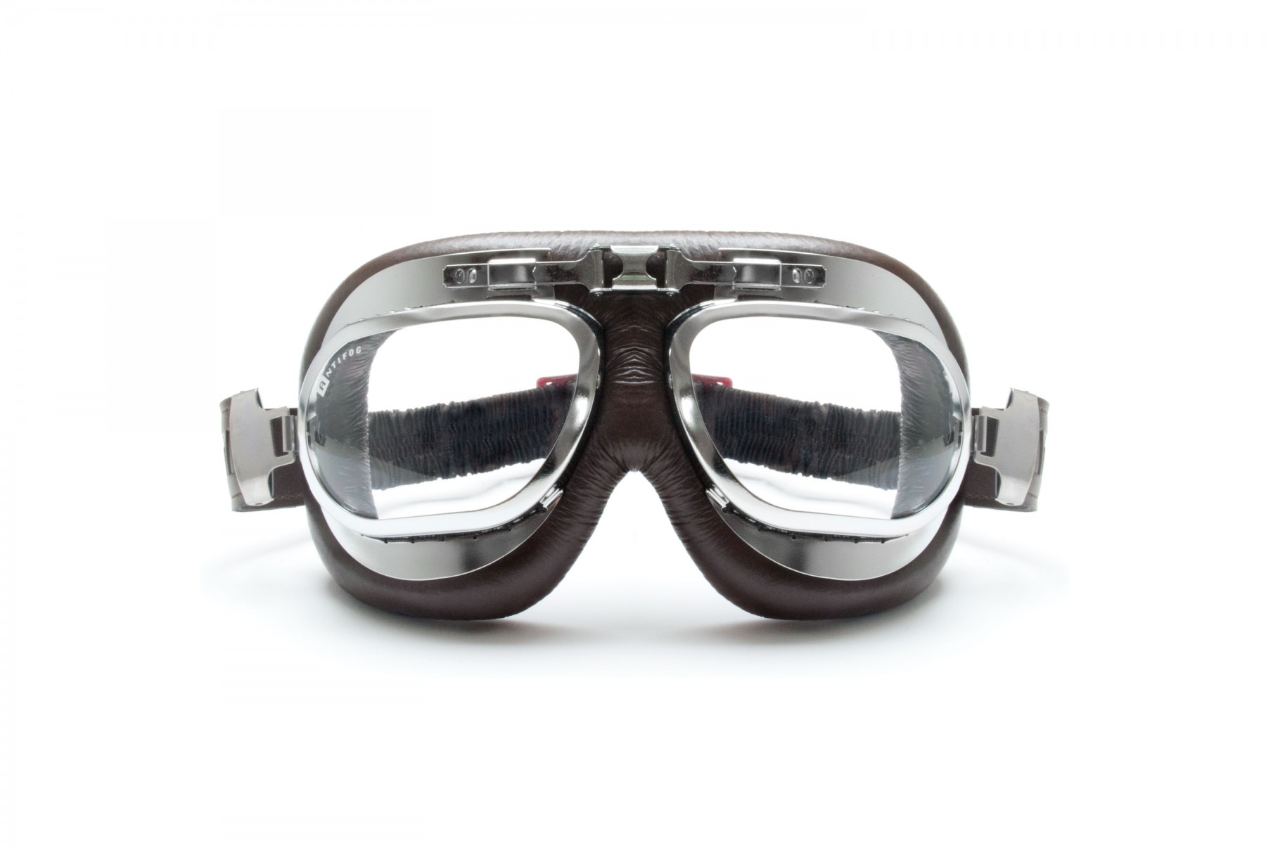 AF191CRB: Mascara Aviador Vintage para moto de los años sesenta .La montadura esta echa en acero inoxidable cromado. Las lentes estan echas en policarbonado antichoque con 2,2 mm de espesor y estan tratadas con una resina anticondensacion y anti-vaho. El broche clasico es ajustable y adapto a cualquier tipo de casco"jet". La forma es envolvent, protege los ojos del viento, las salpicaduras y la intemperie - Información Adicional