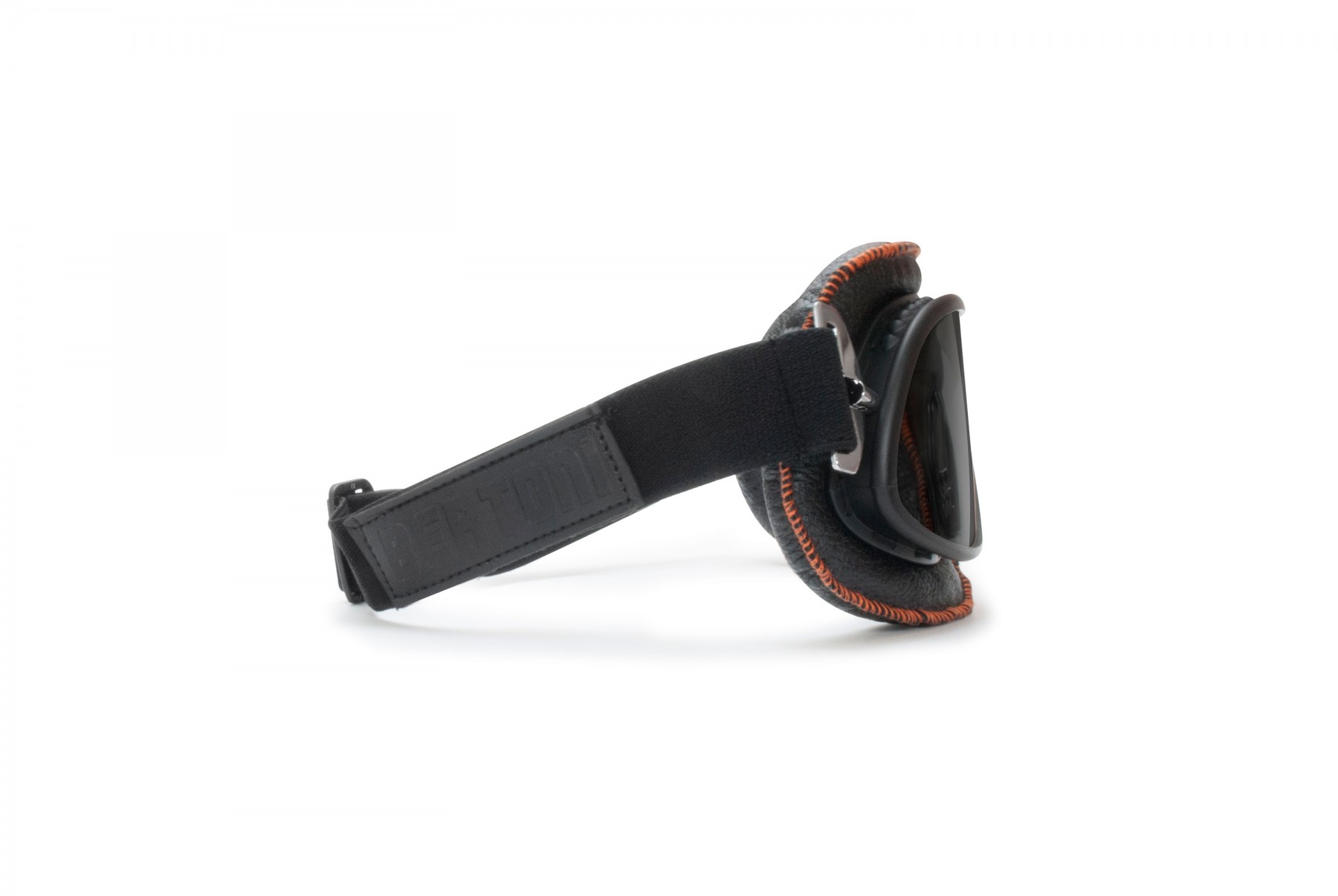 AF196A: Mascara en piel vintage para moto harley davidson, con costuras de color naranja. Los lentes son en policarbonato antichoque 2,2 mm. de espesor. AF196A lleva lentes gris. El clàsico elastico es regulable y se adapta a todos los cascos jet. - Información Adicional