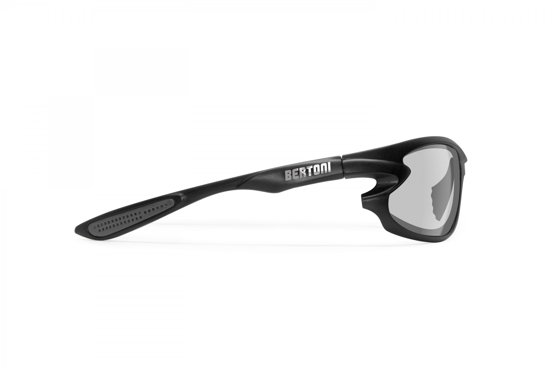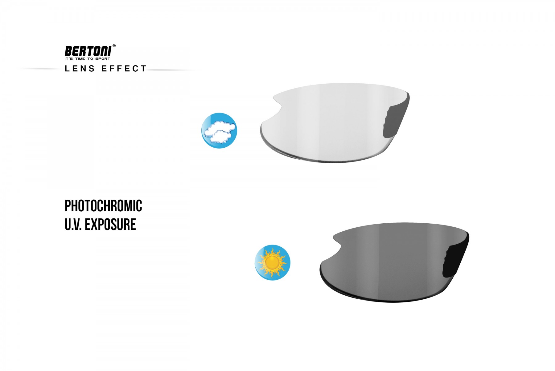 Gafas de Sol Fotocromaticas para Deporte Moto - F676 para Hombre y Mujer by Bertoni: Montura ultraflexible y ligera en Nylon-Mesh, peso 18gr. - Tamaño adecuado para todo tipo de caras (de finas a anchas). Ancho de las lentes: 65mm. lente envolvente anti viento. - Forma envolvente: protege los ojos del viento y la intemperie, mejor visión periférica milímetros. - Lentes fotocromáticas de claro cat. 0 a gris cat. 2 - se adaptan a los cambios de luminosidad. - Plaquetas de puente nasal ergonómicas flexibles: se adaptan a la forma de la cara. - Información Adicional