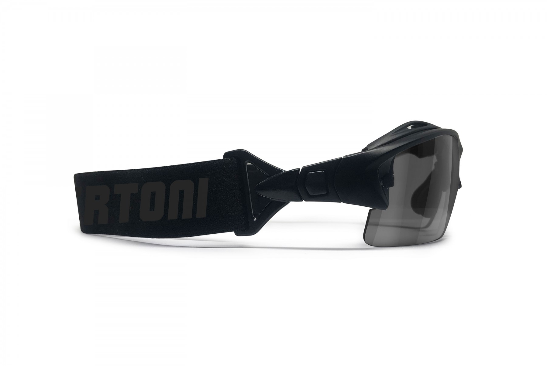 Gafas Moto Graduadas - Lentes Fotocromaticas Anti-Vaho Intercambiables Incluidas - Clip Óptico para Lentes Correctivas - Patillas Sustituibles con Banda Elastica – F399 by Bertoni Italy: Telar: policarbonado negro mate resistente a los golpes - Forma envolvente: protege los ojos del viento y la intemperie, mejor visión periférica - Suplemento removible antiviento/antisudor. Lentes fotocromaticas con tratamiento anti-vaho de claro a oscuro en 8 seg. - NUEVAS Lentes fotocromaticas 2.2 mm a prueba de choque, 8 seg. de claro cat. 0 a gris cat 3 - se adaptan a los cambios de luminosidad - innovadora Tecnología, las lentes reaccionan constantemente a la luz y a los rayos UV. Al aire libre se oscurecen rápidamente hasta categoría 3, aclarándose hasta una total transparencia en interiores o en condiciones de poco brillo. Las lentes están descentradas para evitar distorsiones ópticas. Incluido un inserto optico para lentes correctivas - Su óptico puede montar fácilmente las lentes de prescripción en el clip que le permite llevar gafas graduadas deportivas a prueba de viento sin ningún límite de gradación. Tamaño adecuado para todo tipo de caras (de finas a anchas) - Extremos de las patillas y del pont nasal antideslizantes. Incluido una banda elástica para poder sustituir las patillas laterales para un ajuste perfecto para deporte - logotipo negro en negro.