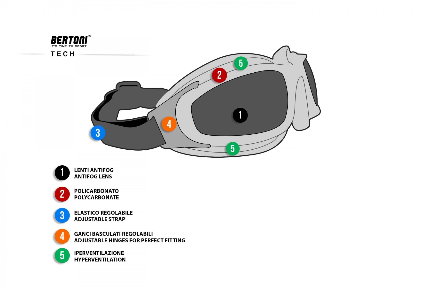 Gafas Moto con Lentes Snap-on antiappannanti Antifog – elástica Ajustable – AF112 by Máscara Moto para Casco Unisex Adulto. Frontal Interior revestido de neopreno a doble densidad – cortes de ventlazione para favorecer el efecto anti-vaho. Lentes antigolpes PC 2.4 mm de grosor con tratamiento anti-vaho antifog 100% protección UV. Elástico ajustable. Certificación ece-fda.