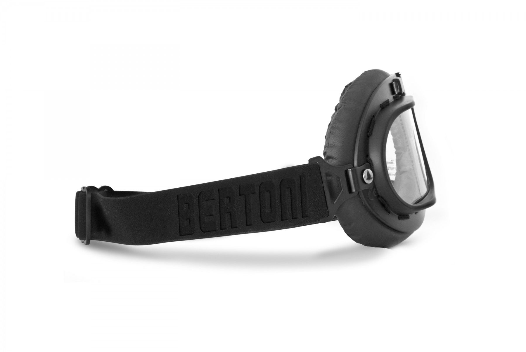 Gafas de Moto Mascara Vintage style lente clara by Bertoni Italy - AF195A negra. Mascara vintage para moto revestida en eco-piel Negra. LENTE: las únicas gafas aviadoras de moto en piel con lentes fotocromáticas de claro a humo - Se adapta a los cambios de luz - Se oscurecen desde la categoría 0 transparente (días de niebla, mal tiempo, conducción nocturna) al humo de categoría 2 (brillo medio / alto). Esta lente se adapta a los cambios de luz. Se trata de las unicas gafas aviador de moto aviador que permiten a los bikers de conducir día y noche sin cambiar lentes o visores. Elastico regulabre adaptable al casco. Perfecta para el casco - Forma envolvente: protege los ojos del viento, las salpicaduras y la intemperie.