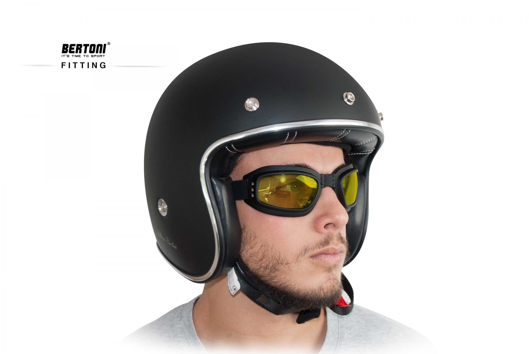 Gafas moto con lente fotocromática polarizada mod. P112FTA de Bertoni. El interior del frontal está recubierto de suave neopreno y el puente es flexible para que la mascarilla pueda plegarse sobre sí misma, reduciendo su tamaño a la mitad cuando no esté en uso. El elástico rigurosamente negro es ajustable. Se recomienda la lente fotocromática polarizada amarilla en todas las condiciones de iluminación. Bertoni garantiza un servicio de asistencia postventa de por vida para todas sus gafas y mascarillas.