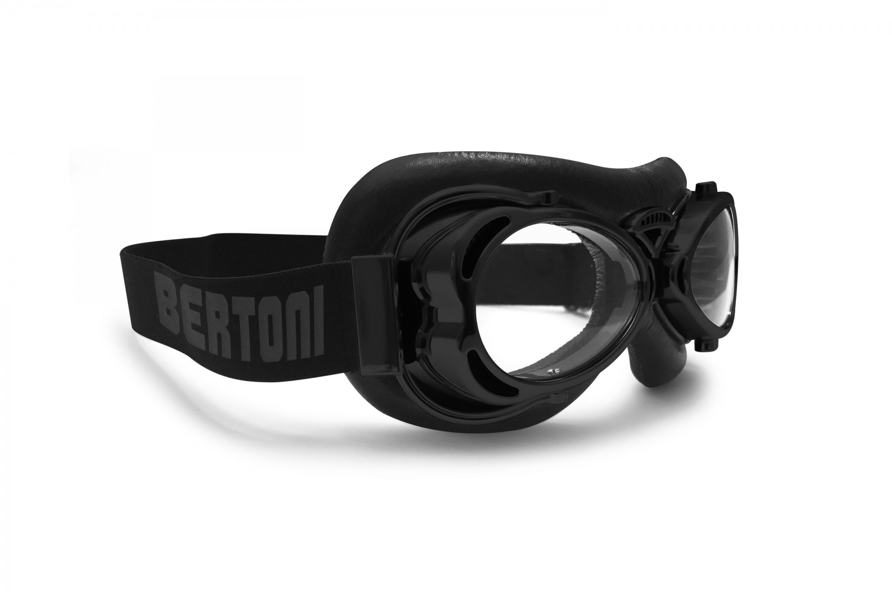 Lunette Moto Vintage Retro Aviateur Compact Design by Bertoni Italy AF77. Compact design et Crochets Réglables pour assurer un ajustement serré parfait, maintien optimal pour tout casque ouvert - Crochets intégrée en mesure d'obtenir une meilleure étanchéité avec le visage. Forme enveloppante : protège les yeux du vent, des projections, des intempéries - confère une meilleure vision périphérique. Verres Anti-Buee Antichoc en polycarbonate 2.2 mm d'épaisseur - 100% UV Protection. Trous d'hyperventilation afin de réduir la formation de buée. Bandeau élastique régable.