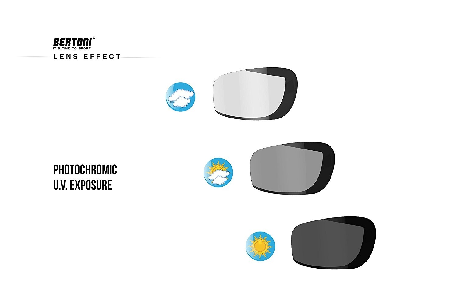Lunettes pour Moto Antibuee - Mousse de Protection - Bande élastique ajustable pour Casque - Bertoni F113 (Photochromique). Nouveau modèle par Bertoni Italie. Lunettes de Moto avec verres antichoc de 2.2 mm d'épaisseur, antibuée et photochromiques, s'adapte aux changements de luminosité. Le fronte des lunettes est recouverte à l'intérieur par une éponge pour améliorer le comfort, coupe - vent, antipoussiére et antisueur. Les crochets réglables permettent d'avoir en Ajustement parfait, maintien optimal, adapté à toutes les casques. - Informations complémentaires