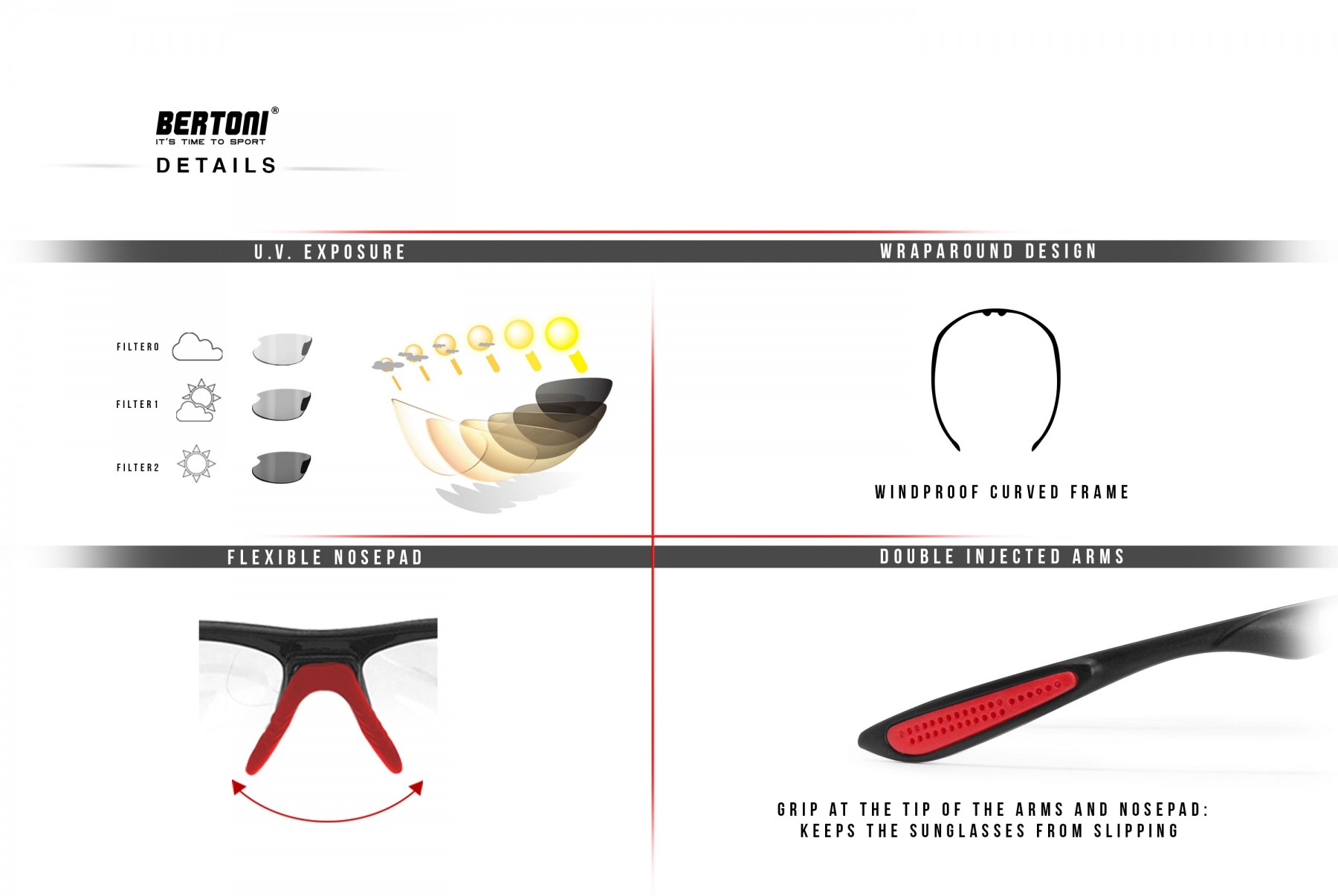 Lunettes de Soleil de Moto Photochromiques - Lunettes pour Homme Femme – F676Y Bertoni Italy: