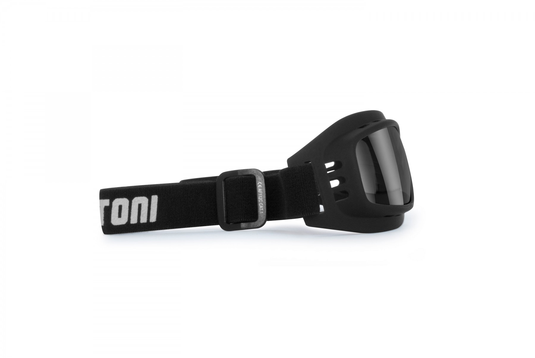 AF112: Maschera con lente antiappannante in policarbonato antiurto. L'interno del frontale è rivestito in morbido neoprene ed il ponte è flessibile in modo che la maschera possa essere ripiegata su se stessa dimezzandone l'ingombro quando non utilizzata. L'elastico rigorosamente nero è regolabile. La lente fumo è consigliata in condizioni di luminosità media o alta. Gli occhiali antiappannanti della linea Antifog di Bertoni hanno lenti trattate con una speciale resina a grado di disperdere la condensa che si forma sulle superfici delle lenti nel passaggio dal freddo al caldo. Questo consente di avere in ogni momento una visione perfetta. Leggeri, con elevata presa a anti-sudorazione, le lenti di questa linea sono in PC 2,2 mm di spessore antiurto.
